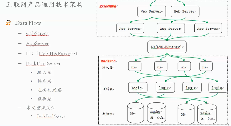 2. 后端架构 按照功能水平划分 四层: 接入层、逻辑层、数据层、数据存储 接入层、逻辑层、原子服务层、数据存储 五层: 接入层、序列号层(异步消息队列)、逻辑层、数据层、数据存储